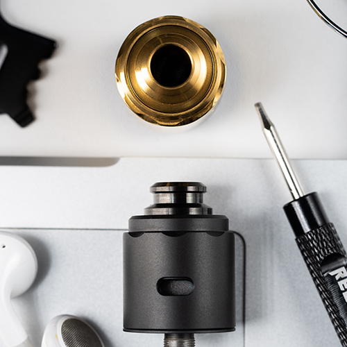 Anti-Leakage Dual Adjustable Top-Down Bottom Air flow 24mm Diameter 30mm Tall Including Drip Tip Signature Reload Pattern On Top 24K